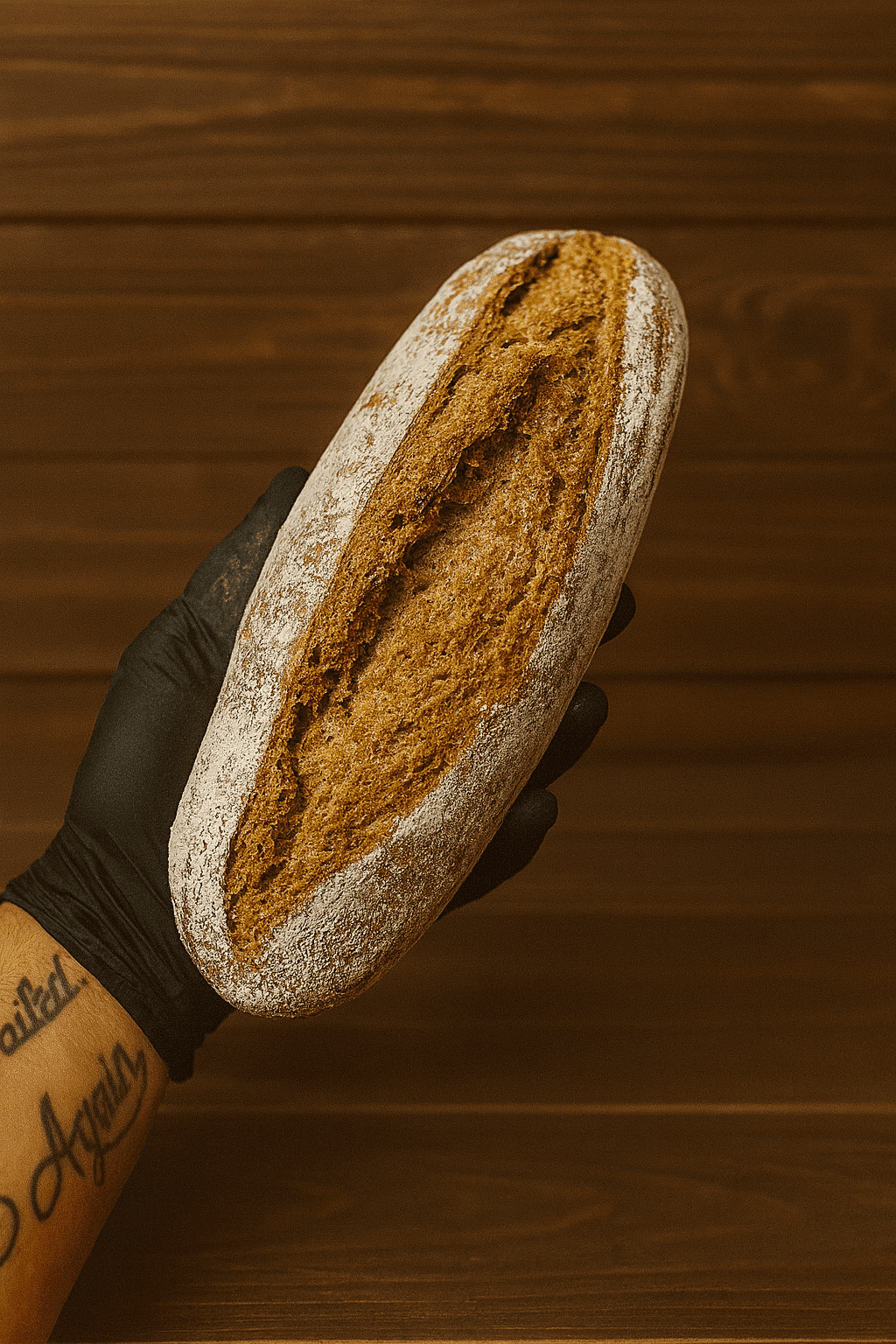 Pain à base de farine d'épeautre bio intégrale. Pain pauvre en gluten à index glycémique bas.