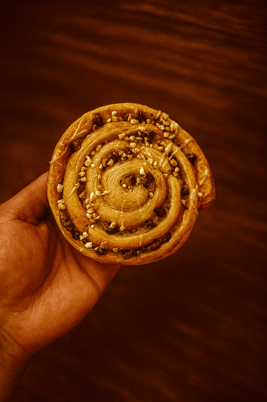 Viennoiserie pur beurre. ALLERGÈNES : GLUTEN, BEURRE, LACTOSE, OEUFS, FRUITS À COQUE. Produit confectionné dans notre laboratoire utilisant : arachides, sésame. *Convient au régime végétarien.