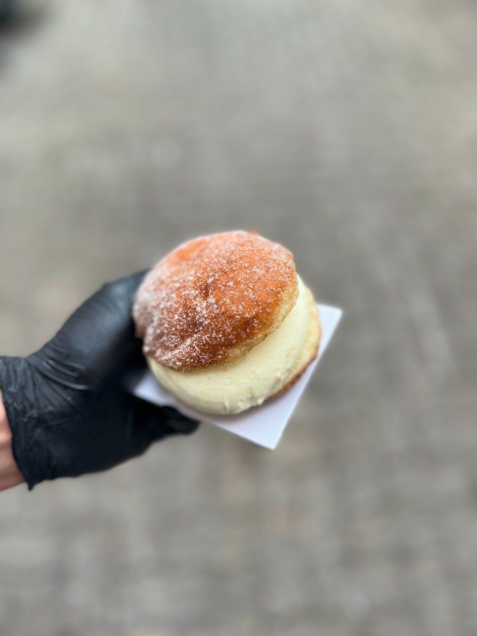 Beignet fourré à la crème diplomate vanille enrobé de sucre cannelle