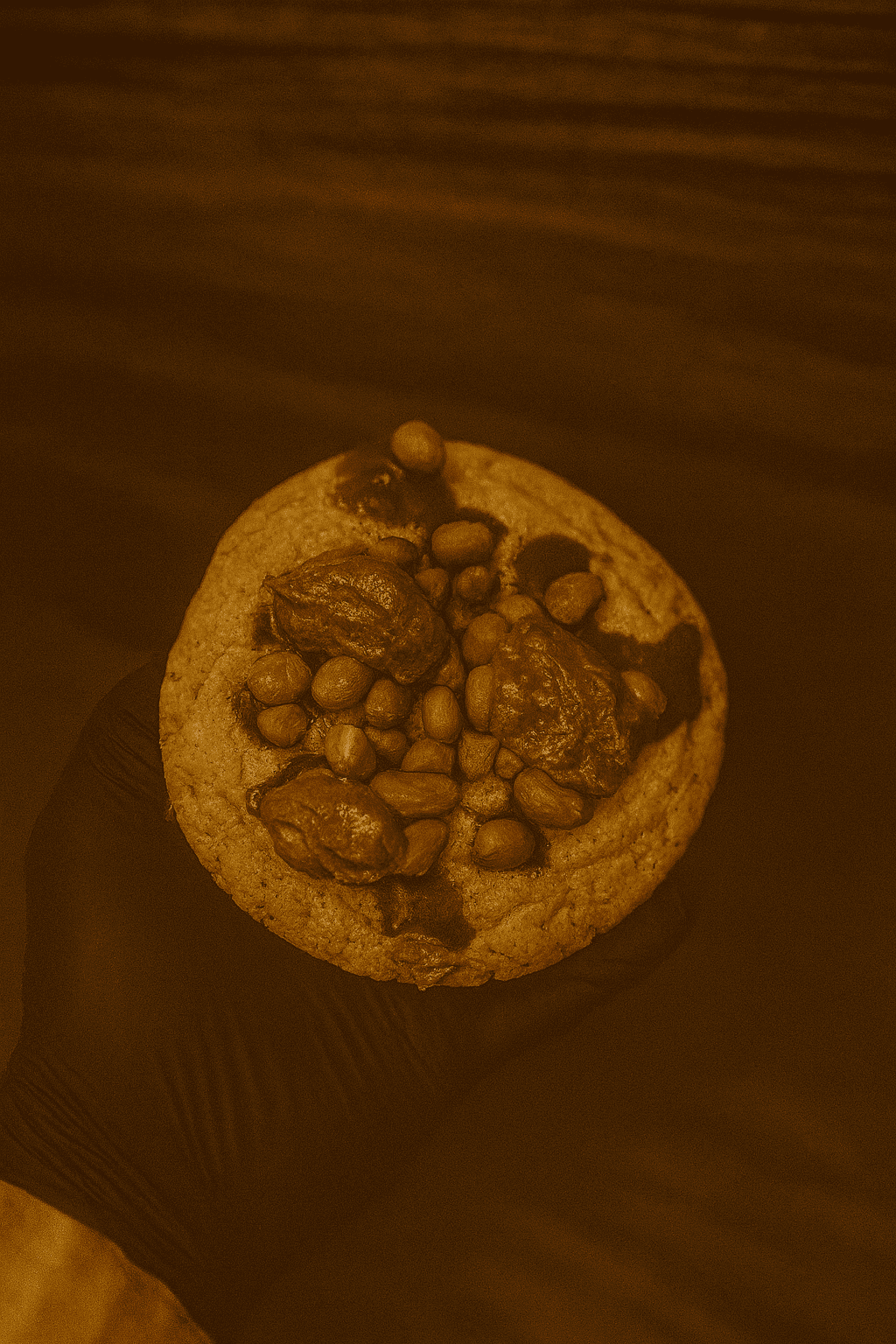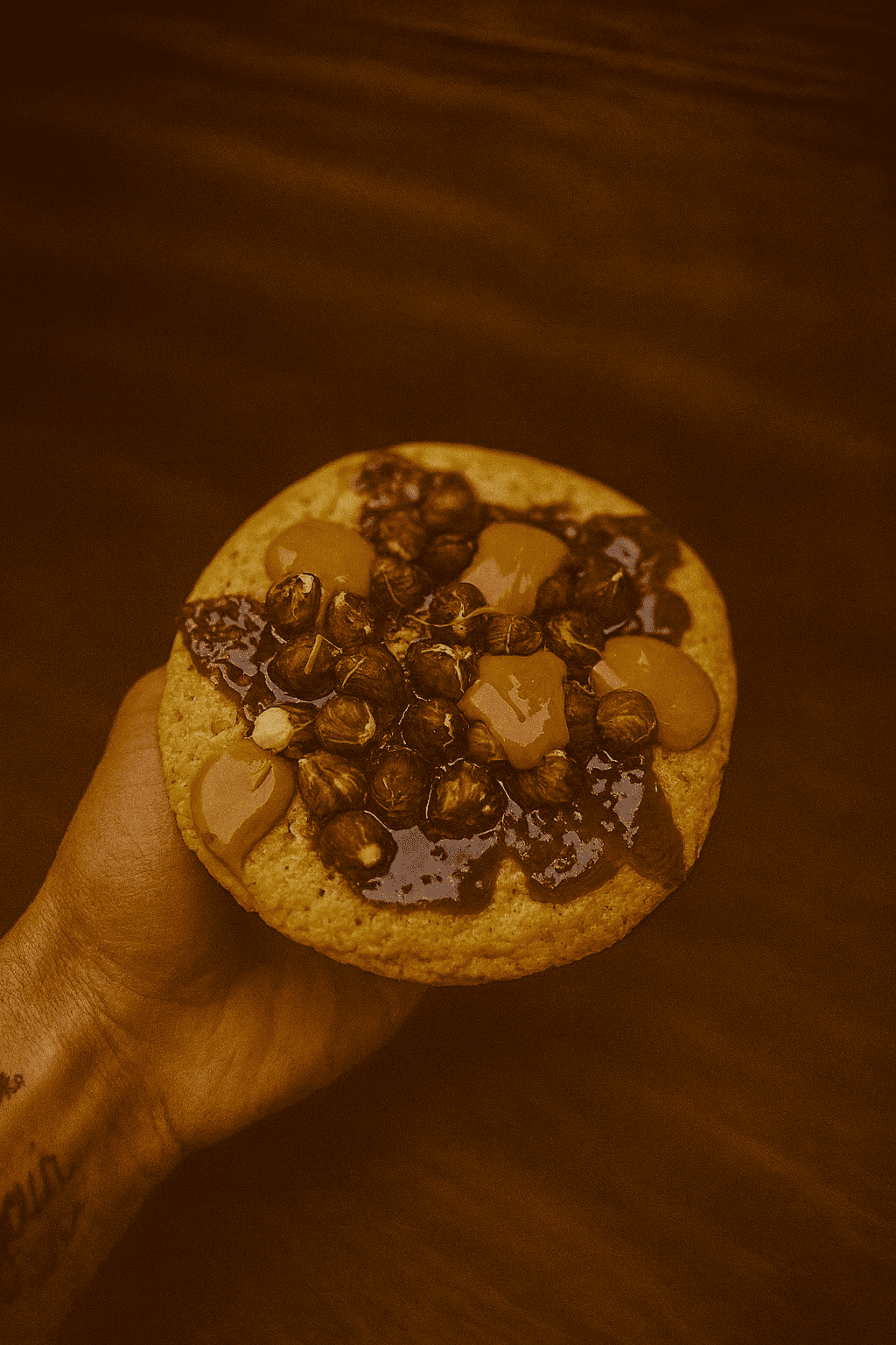 Cookie ultra gourmand composé de fruits secs, de caramel au beurre salé et de praliné.